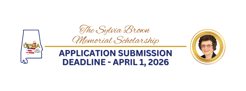 High School seniors, who are children are grandchildren of Alabama UPMA members are eligible for the Sylvia Brown Memorial Scholarship. Please complete the specific application for this scholarship including the paragraph on "What Leadership Means to Me".